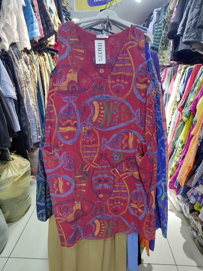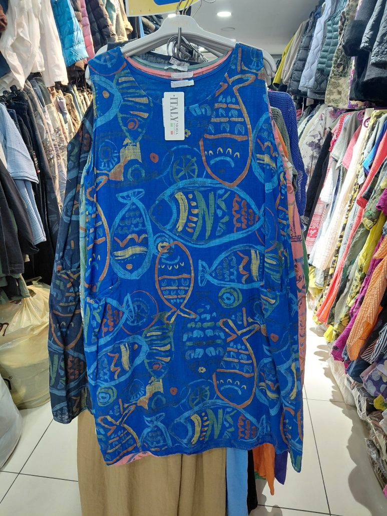 Bambu Keten İtalyan Balık Desen Kollu Elbise
