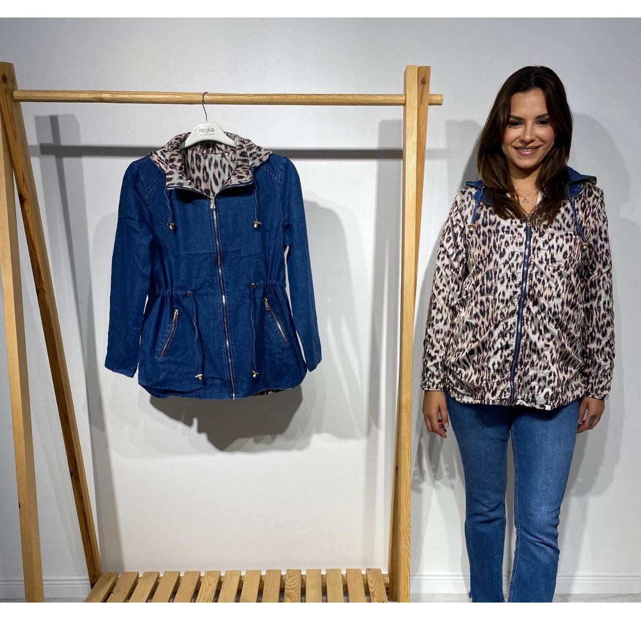 Mağazamız da en çok satan yumuşacık , çift taraflı kullanılabilen kot trençkot modelimiz. Çift taraflı içi leoparlı ve çiçekli iki ayrı seçenek vardır, yağmurluk görevi görüyor. Kapüşonlu, fermuar kapamalı , çift cepli , belden büzgülüdür. 30 derece ısıda sıktırma yapmadan yıkanması tavsiye edilir.