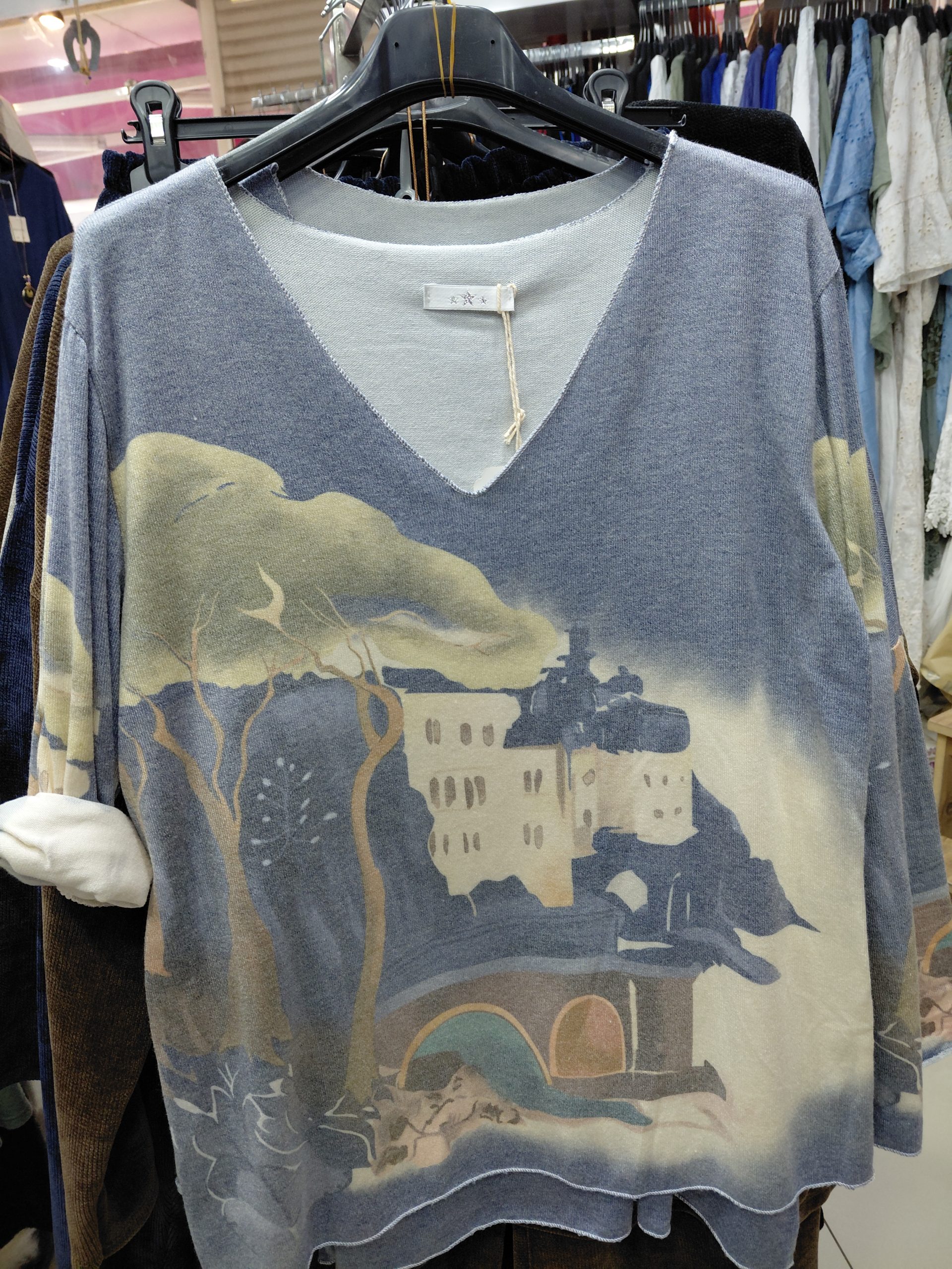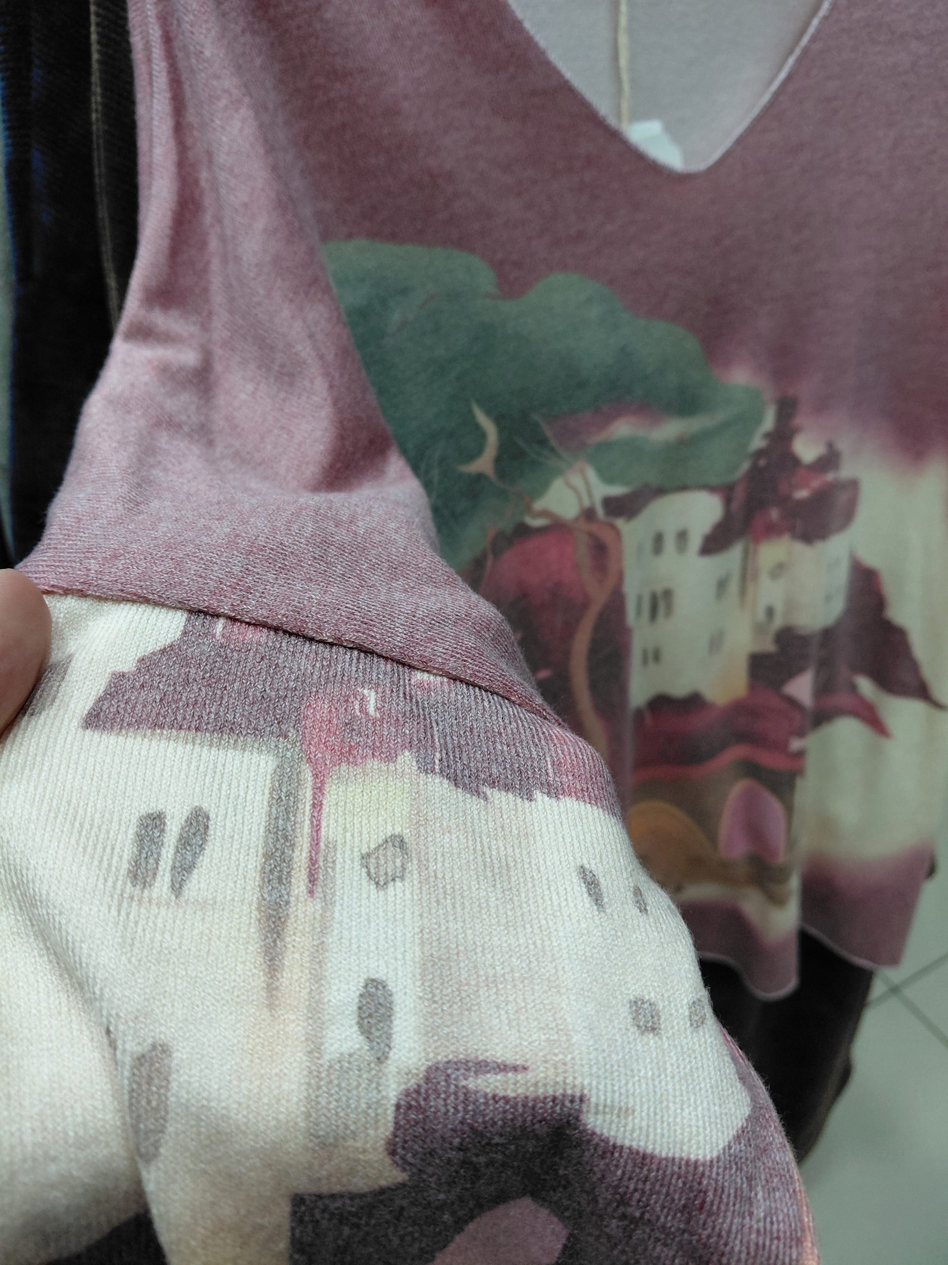 Yağlı boya sevenlere tablo gibi triko kazak geldi, biz çok beğendik. Standart beden, yumuşacık desenli ve esnektir