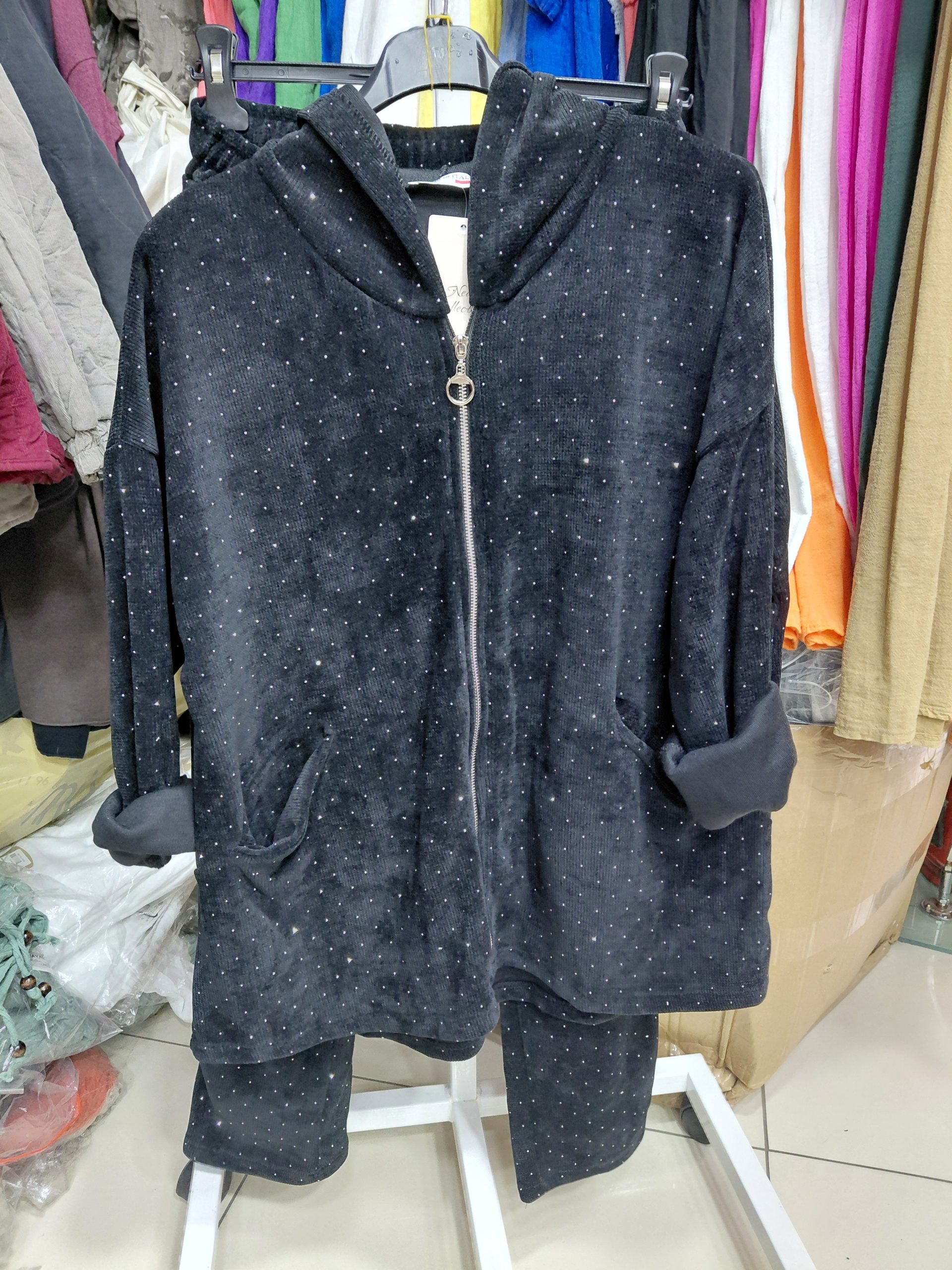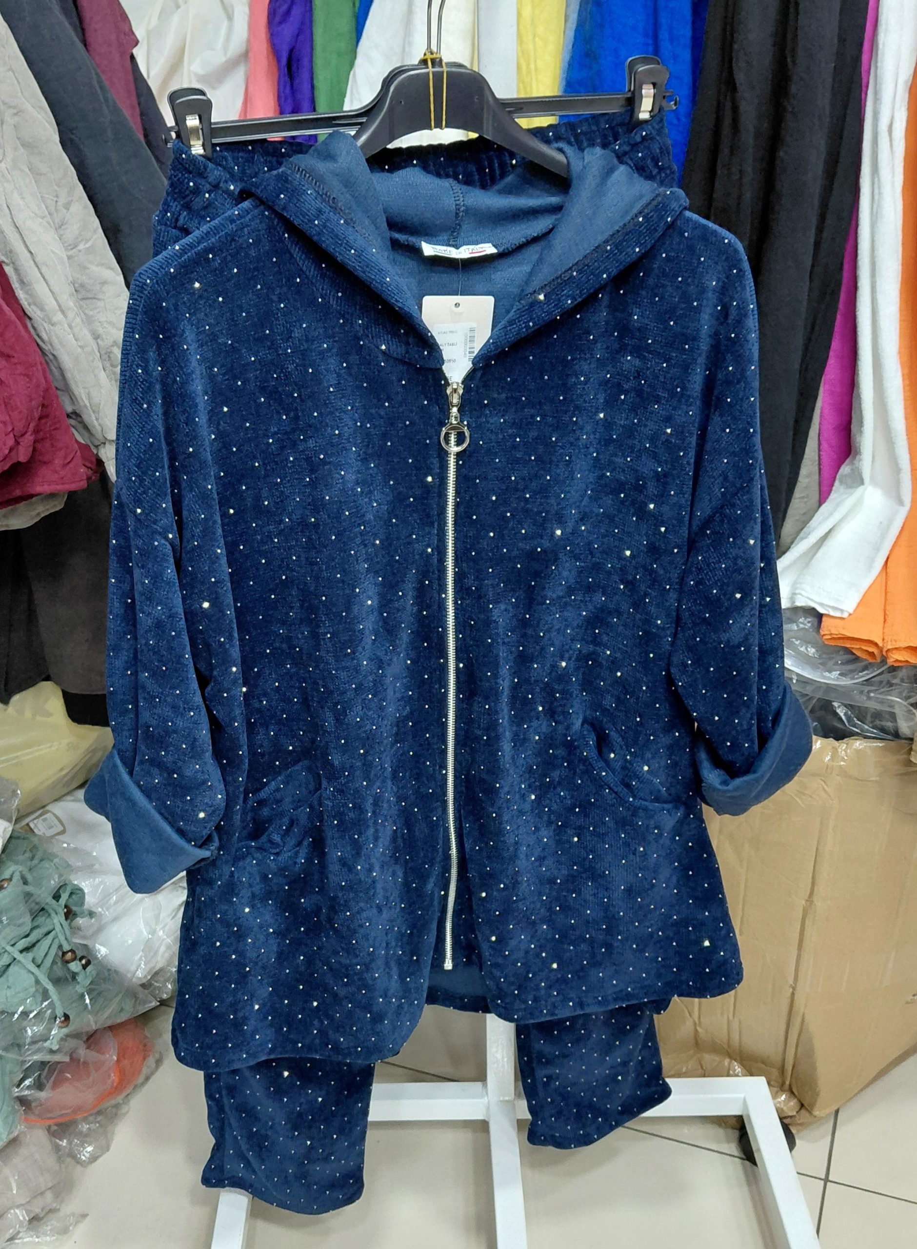 Mağazamız da en çok satan kadife takımımız yeniden stoklarda. Parlak taşları , fermuarlı , havuç kesim pantolonu hafif esnek kumaşıyla sizleri bekliyor. Standart bedendir ve 30 derece ısıda kısa programda yıkanması tavsiye edilir.